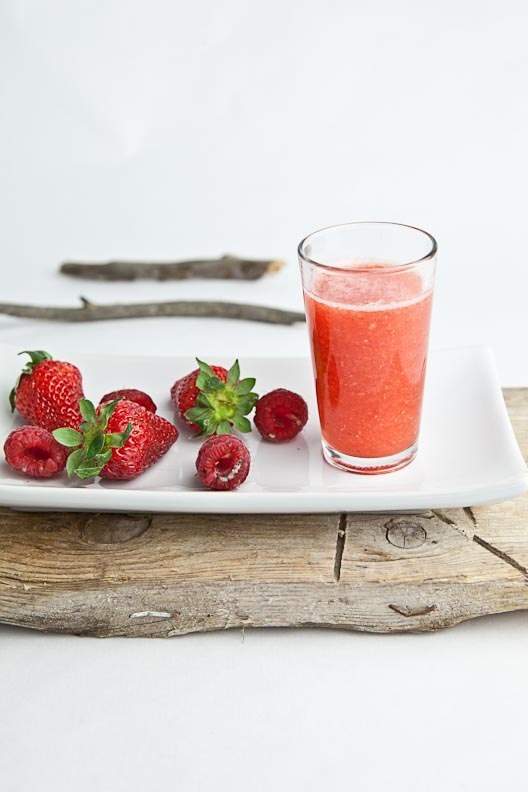Alla bär är en källa till antioxidanter och hjälper dig att hålla dig pigg hela dagen. Du kan använda färska eller frysta hallon eller jordgubbar eller både och. Lite pressad citronsaft gör att smoothien känns extra fräsch.